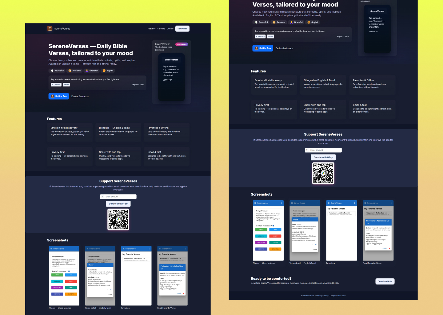 A thoughtfully designed digital reading experience that helps users discover Bible verses aligned with their emotional state. Instead of searching manually, users select how they feel and instantly receive meaningful verses curated to support reflection, comfort, or encouragement.